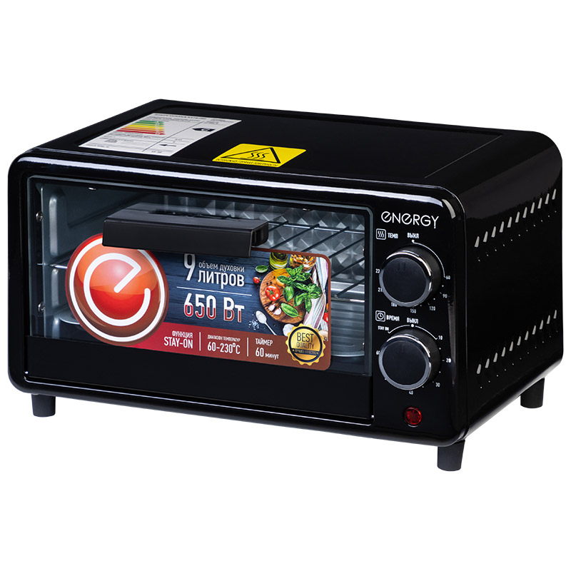 Внутренний объём 9 л: Термостат с диапазоном температур 60-230ºС: Таймер: Индикатор работы: Металлическая решетка, противень: Мощность 650 Вт: Цвет черный;;