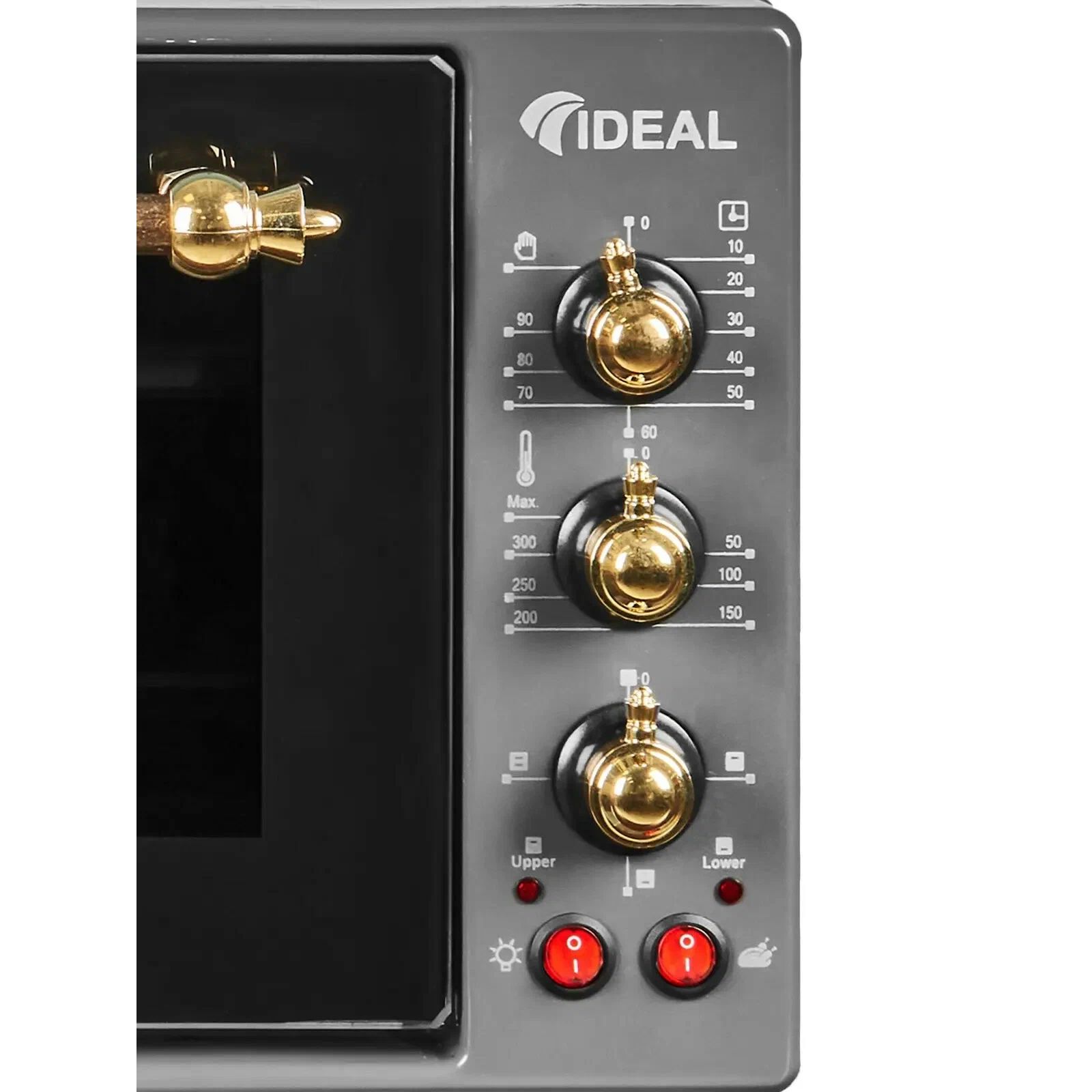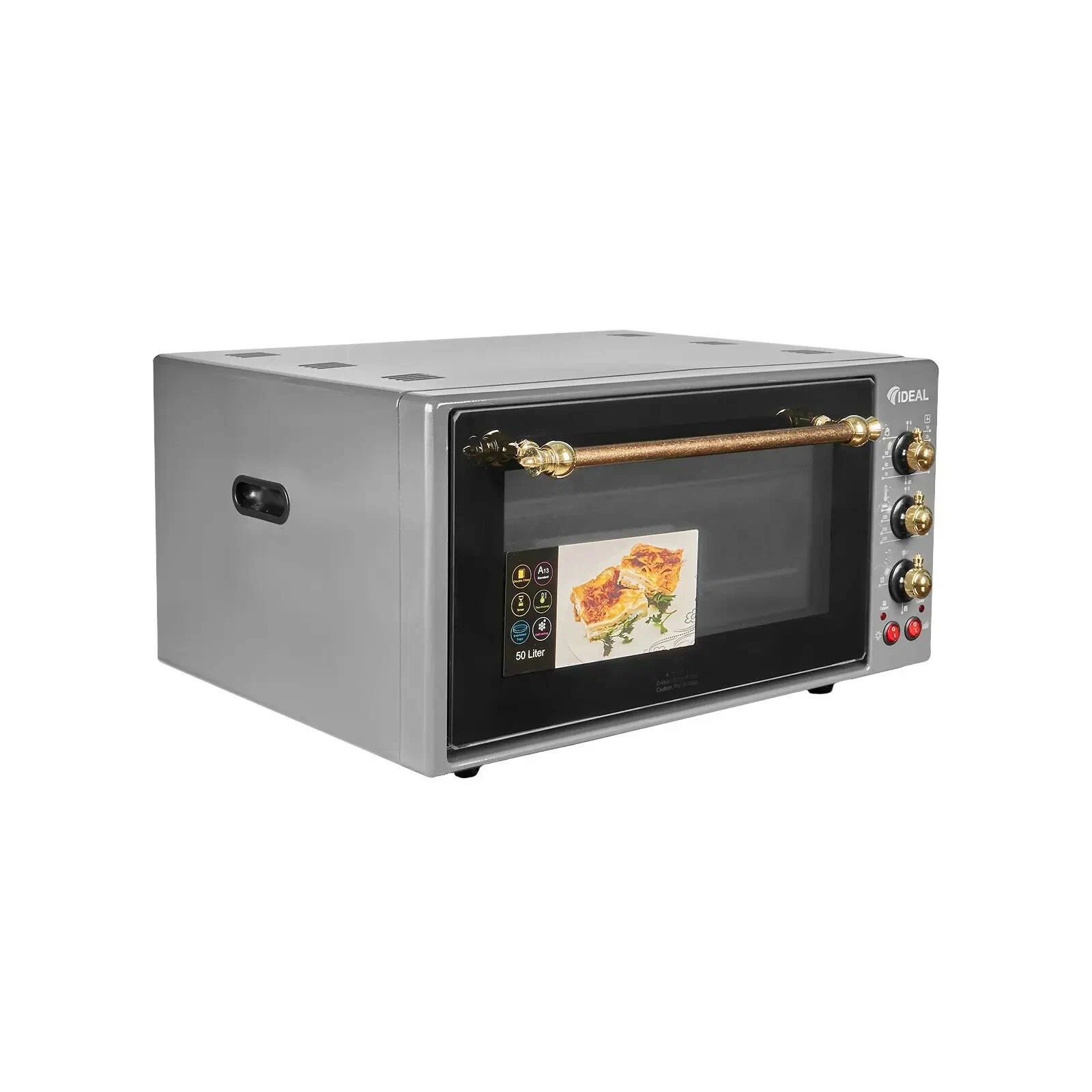 Общие параметры Тип мини-печь Модель IDEAL M 50 04 Основной цвет серый Дополнительный цвет золотистый Духовка Тип духовки электрическая Внутренний объем духовки 50 л Внутреннее покрытие эмаль Материал корпуса металл Термоизолированный корпус есть Ручка с защитой от нагревания есть Минимальная температура 50 °C Максимальная температура 300 °C Количество режимов работы 4 шт Режимы приготовления верхний, верхний + нижний, гриль, нижний Гриль есть Вертел есть Количество нагревательных элементов 2 шт Максимальное время приготовления 90 мин Открытие дверцы духовки откидная Количество стекол дверцы 2 шт Подсветка камеры есть Вид направляющих рельефные Конфорки Общее количество конфорок 0 шт Число электрических конфорок 0 Число газовых конфорок 0 шт Диаметр конфорок 0 мм Управление Тип управления механическое Продолжительность таймера 90 мин Индикаторы режима работы Звуковой сигнал есть Отключение звукового сигнала есть Автоматическое отключение есть Дополнительная информация Длина сетевого шнура 1 м Отсек для сетево