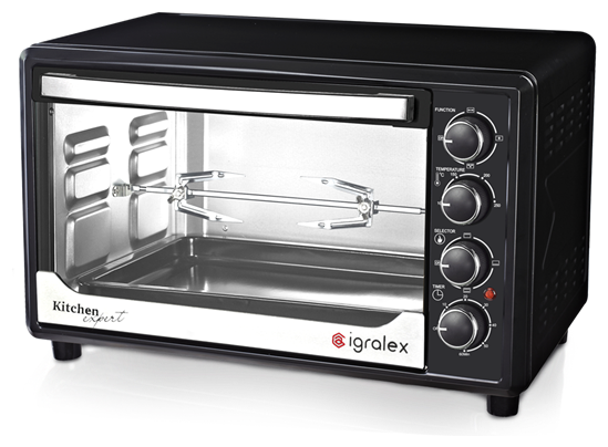- Комплектация: вертел, решётка, противень, держатель для противня/решётки