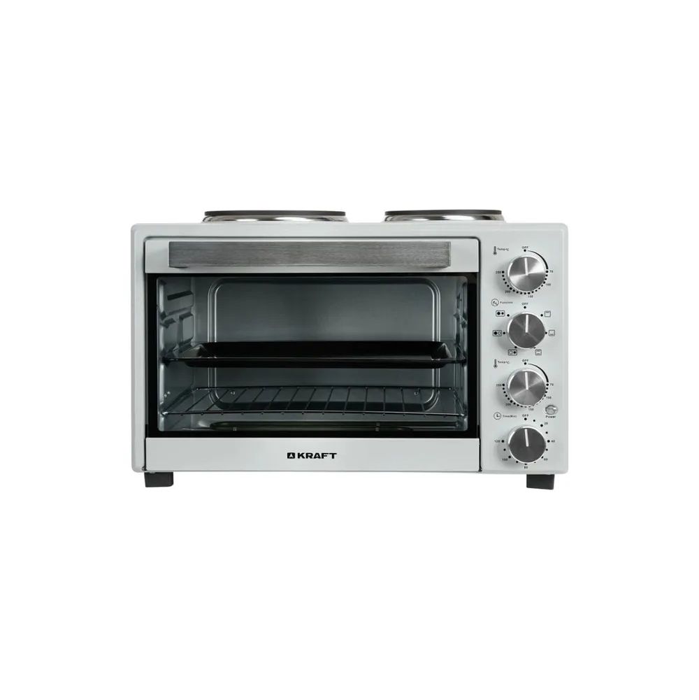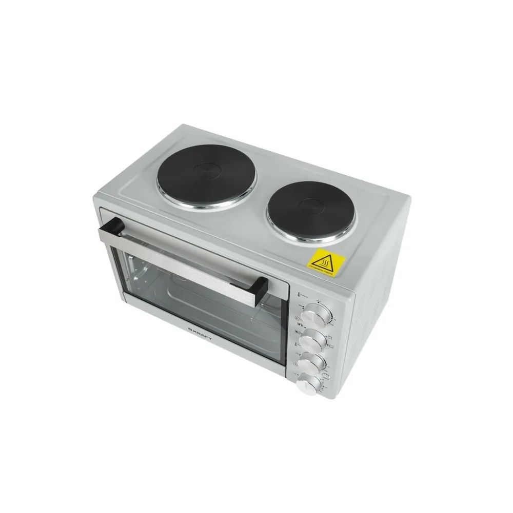 Основные: Объем духовки, л: 38: Потребляемая мощность, Вт: 1600: Режимы работы: Верхний + нижний нагрев, Верхний нагрев, Нижний нагрев: Таймер: Звуковой: Управление мини-печью: Механическое: Внутреннее покрытие: Металл: Количество конфорок: 2: Макс. температура, °С: 250: Количество режимов работы: 6: Тип питания: Электрический: Общие: Тип: Мини-печь: Размеры, мм: 534 х 379 х 345: Страна-изготовитель: Китай: Дополнительные: Цвет: Серый, серебристый: Количество стекол дверцы духовки: 1: Вес товара, г: 9200;;