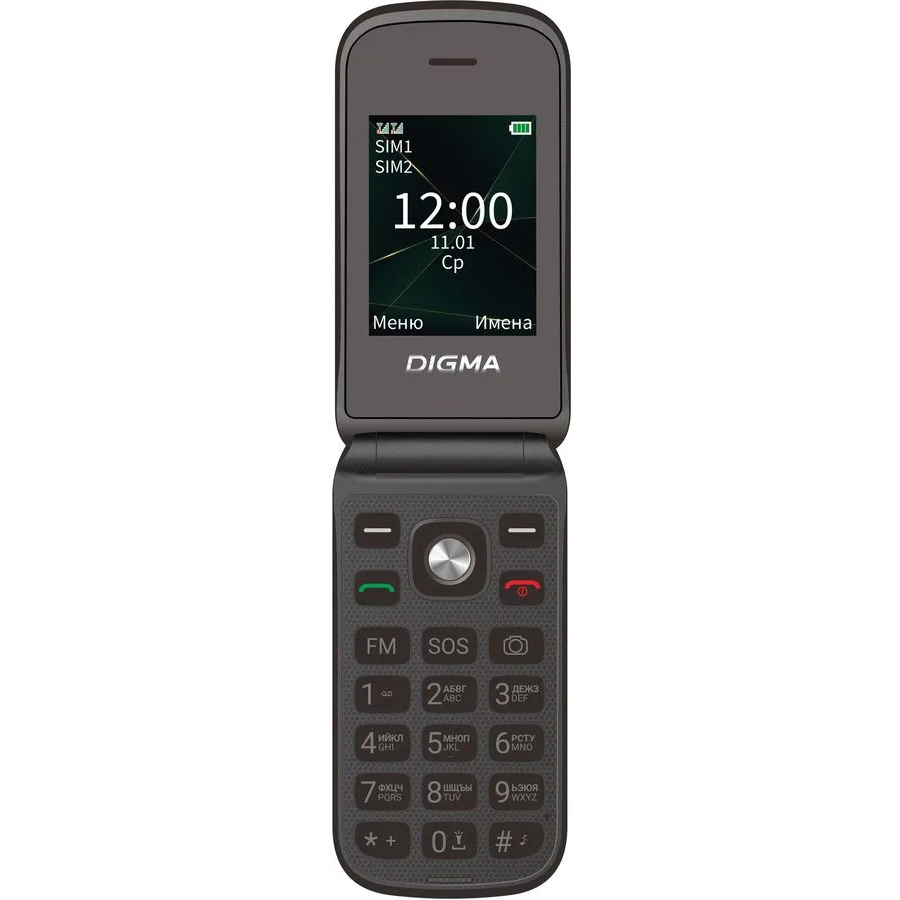 Основные: Производитель : Digma: Тип : телефон: Тип корпуса : раскладушка: Тип SIM-карты : nano SIM: Количество SIM-карт : 2: Экран: Диагональ : 2.44": Разрешение : 240x320: Камера: Количество основных (тыловых) камер : 1: Количество мегапикселей основной камеры : 0.3 МП: Функции камеры : фотовспышка: Связь: Стандарт связи : 2G, 3G, 4G (LTE): Интерфейсы : Bluetooth, microUSB, mini jack 3.5 mm: Стандарт Bluetooth : 5.0: Память и процессор: Слот карт памяти : да: Максимальный объём карты памяти : 128 Гб: Питание: Ёмкость аккумулятора : 1300 мАч: Другие функции: Фонарик : да: FM-радио : да: Дополнительно: Цвет : чёрный: Размеры (ШхВхГ) : 106 x 19 x 53 мм: Вес : 0.099 кг;;;;