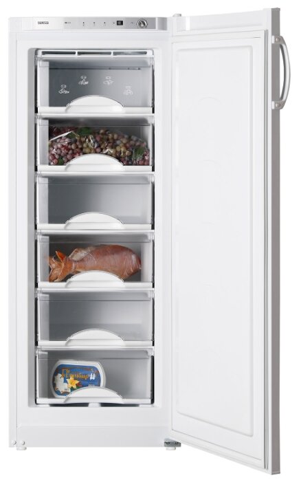 Общие характеристики: Тип морозильник-шкаф: Цвет / Материал покрытия белый / пластик/металл: Управление электромеханическое: Энергопотребление класс A+ (237 кВтч/год): Количество компрессоров 1: Хладагент R600a (изобутан): Количество камер 1: Количество дверей 1: Габариты (ШxГxВ) 59.5x62.5x149.8 см: Холод: Размораживание морозильной камеры ручное: Автономное сохранение холода до 16 ч: Мощность замораживания до 24 кг/cутки: Минимальная температура в морозильной камере -18 °C: Дополнительные возможности суперзаморозка: Объем: Общий объем 198 л: Другие функции и особенности: Генератор льда отсутствует: Возможность перевешивания двери есть: Уровень шума до 39 дБ: Климатический класс SN, T: Вес 57 кг;;