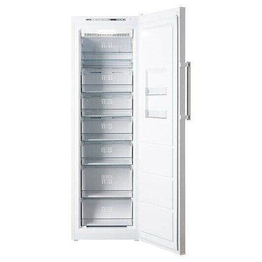 Общие Характеристики: ; Цвет товара; черный; Тип морозильника; шкаф; Тип управления; электронное; Количество камер; 1; Количество дверей; 1; Количество ящиков/полок; 8; Общий объем; 278 л; Полезный объем; 245 л; Класс энергопотребления; A+; Энергопотребление; 303 кВтч/год; Климатический класс; N, SN, T, ST; Дополнительные Характеристики: ; Количество компрессоров; 1; Материал полок; стекло; Особенности; перевешиваемые двери, ручка с толкателем; Индикация; открытой двери, температуры; Режимы; суперзаморозка; Размораживание; No Frost; Хладагент; R600a (изобутан); Автономное сохранение холода; 20 ч; Мощность замораживания; 14 кг/сут; Минимальная температура в морозильной камере; -18; Уровень шума; 43 дБ; Габариты и вес; Вес; 71 кг; Размеры (ШхГхВ); 59.50х62.80х186.80 см; Материал покрытия; пластик/металл