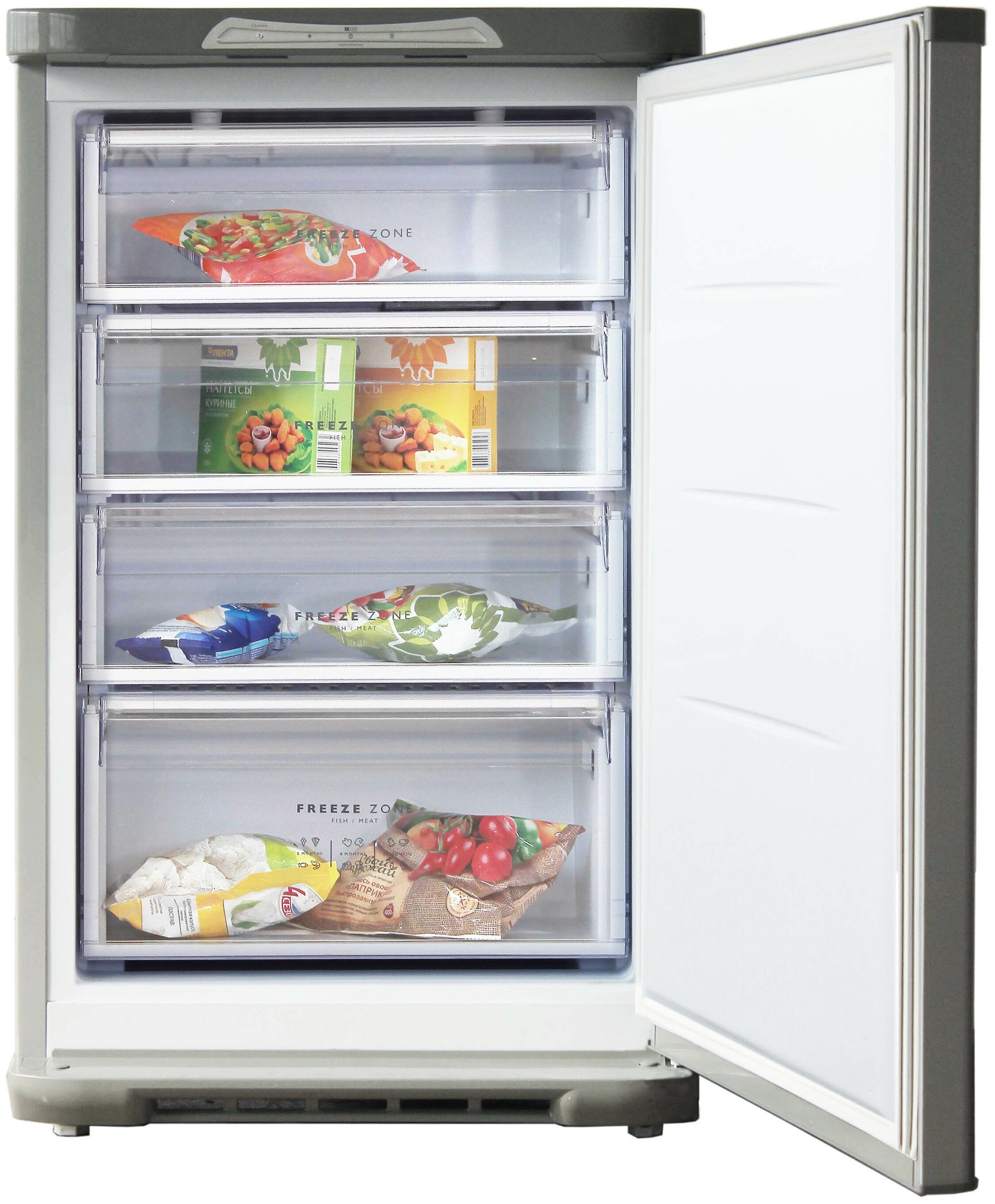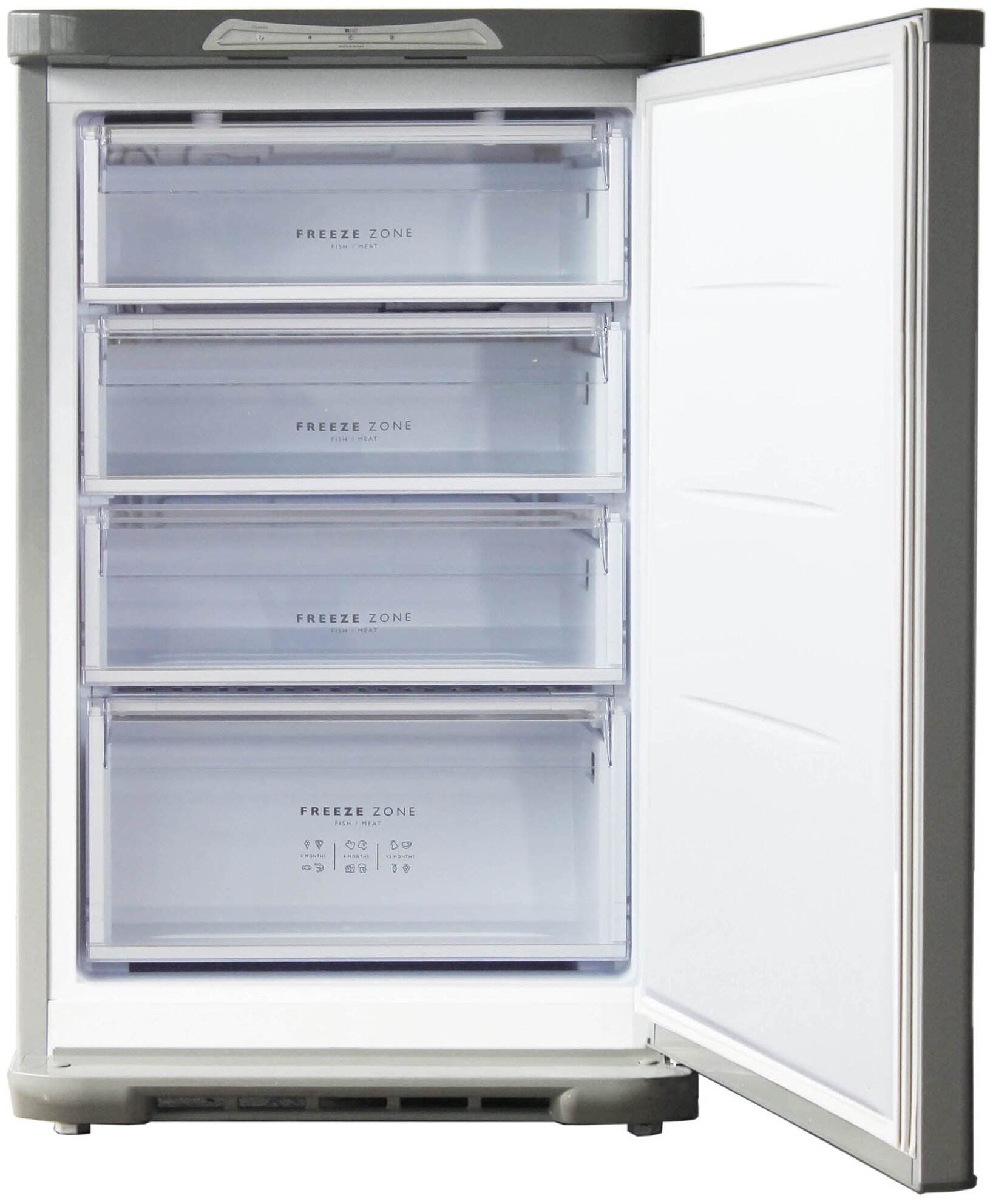 тип морозильника: шкаф, размораживание: ручное, общий объем: 135 л, высота: 99 см, ширина: 60 см, глубина: 62.50 см, класс энергопотребления: A, климатический класс: N, количество ящиков/полок: 4, цвет корпуса: серебристый, минимальная температура в морозильной камере: -18, количество камер: 1, тип управления: электромеханическое, мощность замораживания: 12 кг/сут, перевешиваемые двери, уровень шума: 41 дБ
