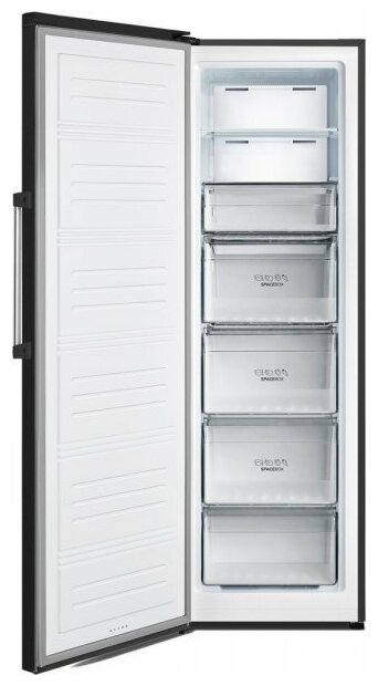 тип морозильника: шкаф, размораживание: No Frost, общий объем: 300 л, высота: 185.50 см, ширина: 59.50 см, глубина: 66.60 см, класс энергопотребления: A+, климатический класс: N, T, ST, количество ящиков/полок: 7, цвет корпуса: чёрный, количество камер: 1, тип управления: электронное, мощность замораживания: 14 кг/сут, уровень шума: 41 дБ
