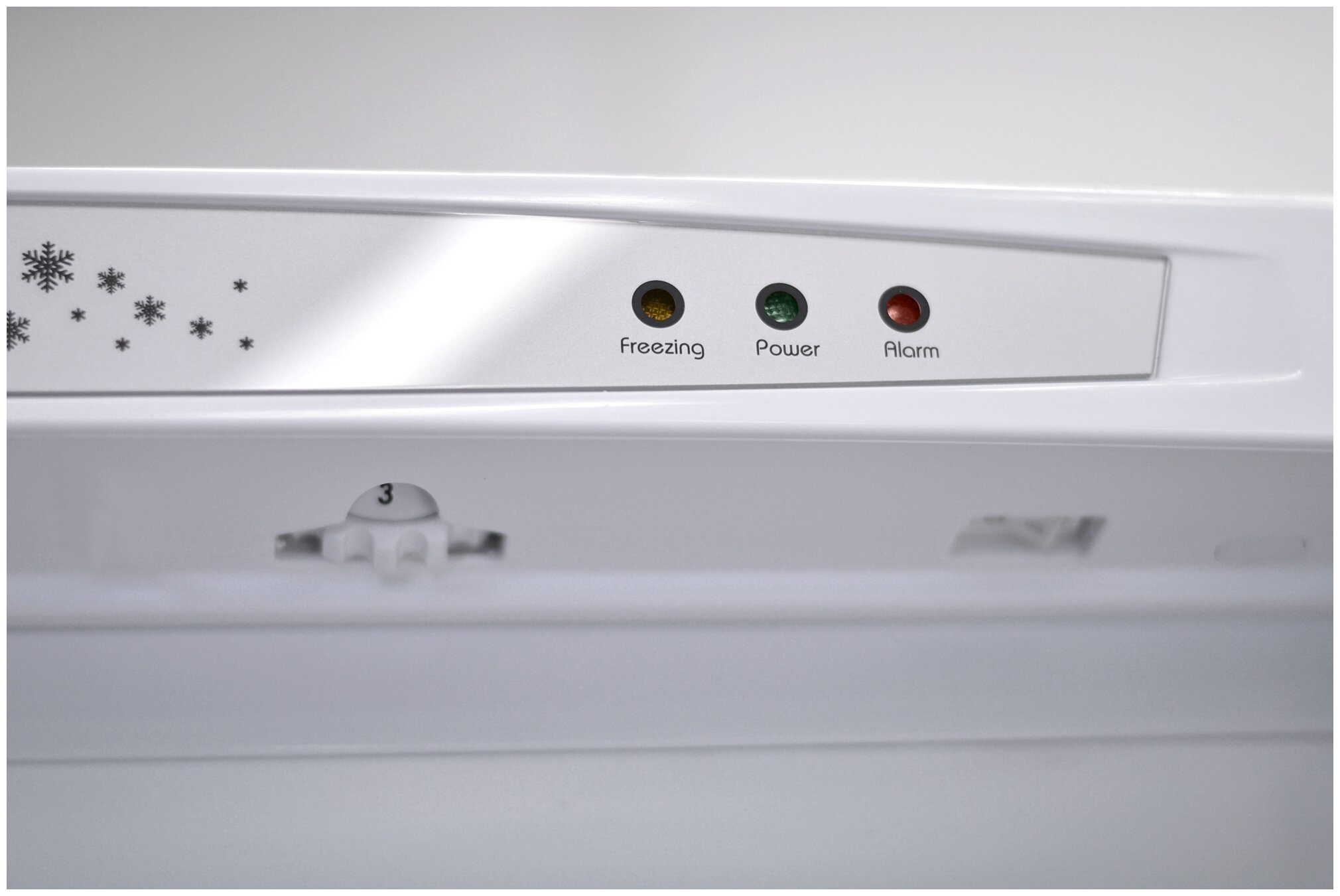 тип морозильника: шкаф, размораживание: ручное, общий объем: 115 л, высота: 90 см, ширина: 57.40 см, глубина: 62 см, класс энергопотребления: A+, климатический класс: N, ST, количество ящиков/полок: 3, цвет корпуса: белый, количество камер: 1, тип управления: электромеханическое, суперзаморозка, мощность замораживания: 8 кг/сут, перевешиваемые двери, уровень шума: 38 дБ