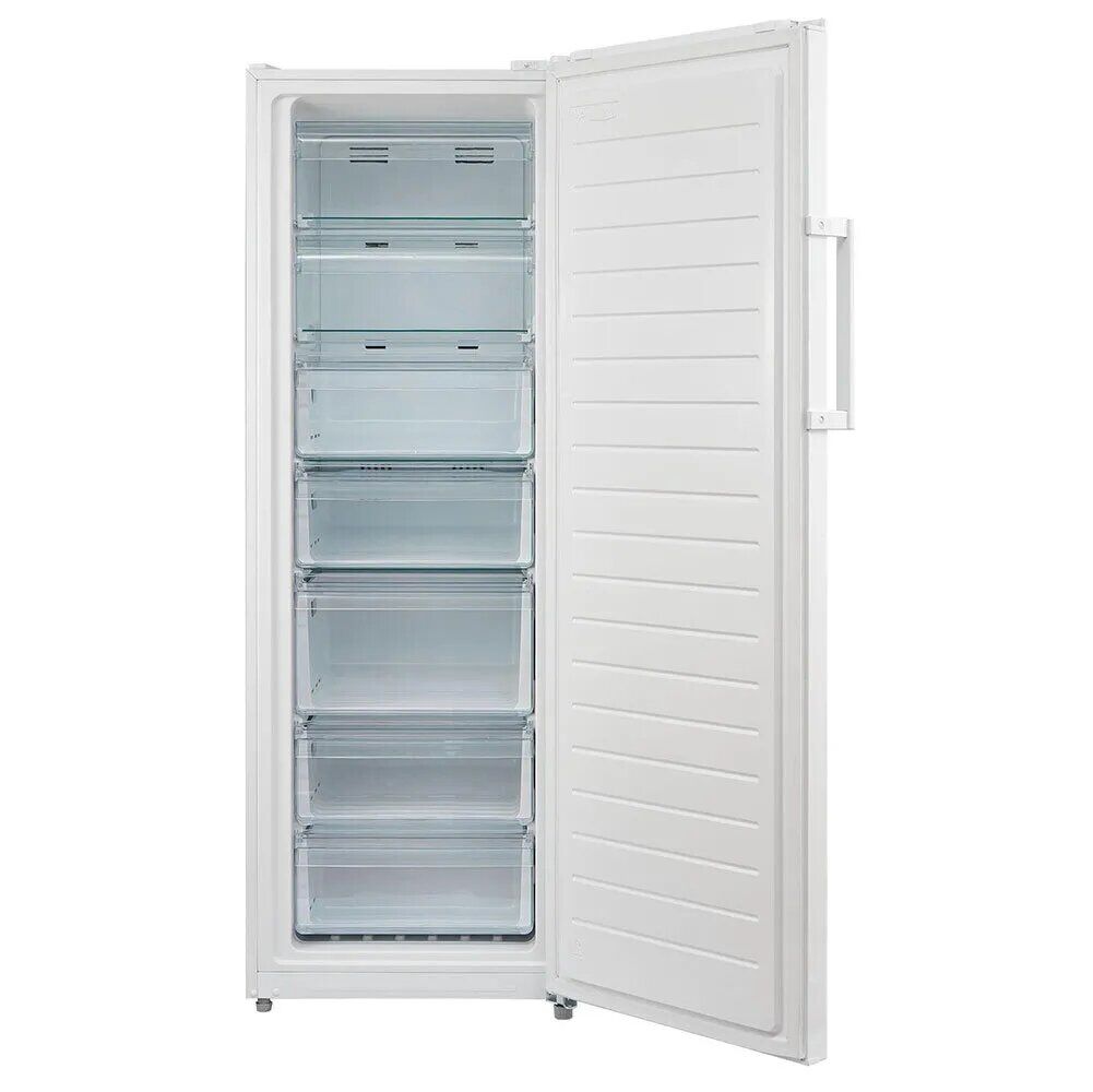 Общие характеристики: Тип морозильника: шкаф: Тип управления: электронное: Количество камер: 1: Количество дверей: 1: Общий объем: 261 л: Класс энергопотребления: A+: Дополнительные характеристики: Количество компрессоров: 1: Особенности: дисплей, перевешиваемые двери: Индикация: температуры: Режимы: суперзаморозка: Размораживание: No Frost: Габариты и вес: Размеры (ШхГхВ): 59.50х63.20х172.20 см: Материал покрытия: пластик/металл;