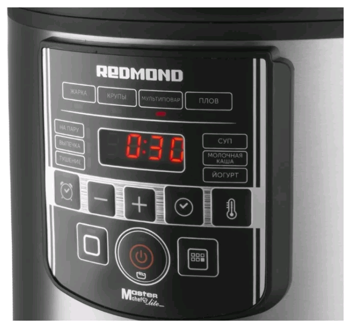 - Программы: мультиповар, молочная каша, жарка, приготовление на пару, выпечка, тушение, плов, йогурт, крупа, пас