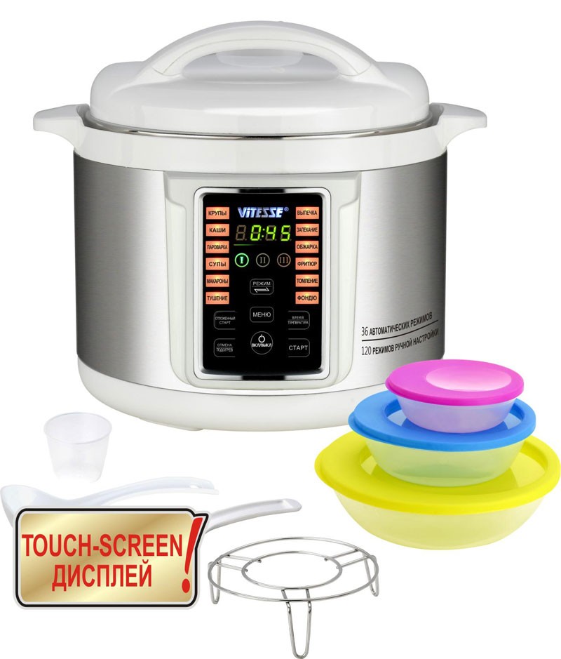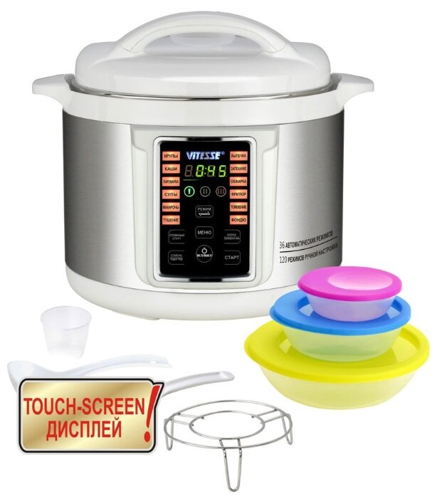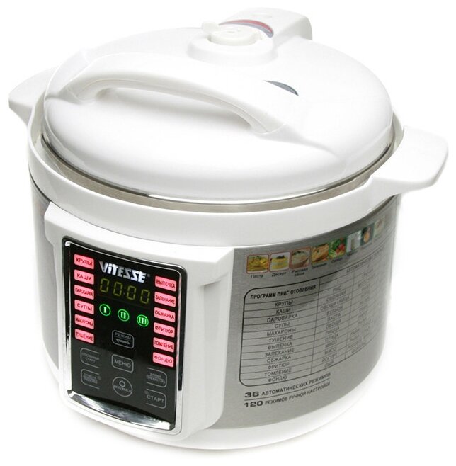 - Программы: молочная каша, жарка, приготовление на пару, выпечка, тушение, фритюр, крупа, фондю