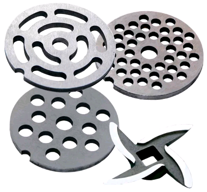 - Диск для фарша: 3 в комплекте, диаметр отверстий 5 мм, 7 мм