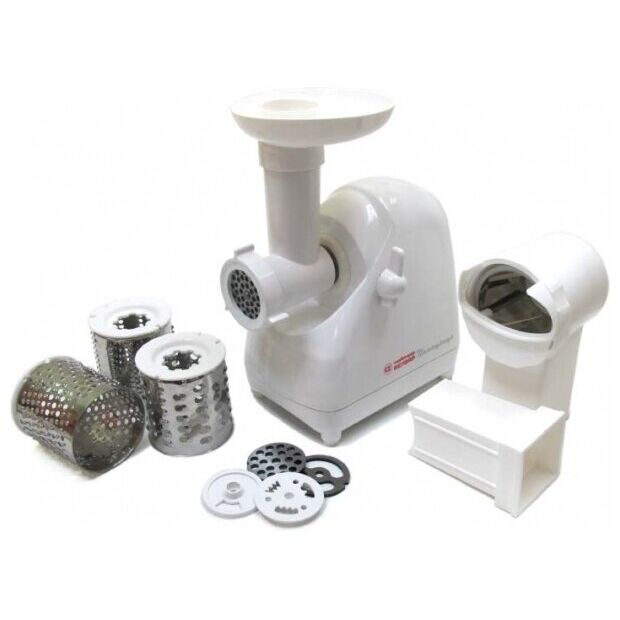 Максимальная мощность - 1500 ВтНоминальная мощность - 220 ВтНасадка-мясорубка с 3-мя сменными решеткамиНасадка-шинковка с 4-мя сменными барабанами(для нарезки ломтиками, для крупной и мелкойшинковки, для драников)Насадка для профилирования тестаНасадка для набивки колбасФункция “Реверс”Отсек для намотки сетевого шнураПроизводительность - от 35 до 50 кг/ч в зависимостиот категории перерабатываемого мяса: Производительность, кг/мин: 0,8: Мощность, Вт: 220: Количество насадок: 4: Количество скоростей: 1: Бренд: Белвар: Тип: Мясорубка: Цвет: Белый: Вес товара, г: 4500: Вес в упаковке, г: 2000;;