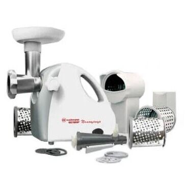 Технические характеристики : Мощность номинальная - 220 Вт (максимальная - 1500 Вт) : Производительность 0.4 кг/мин : Система реверса есть : Насадки : насадка-терка, насадка для нарезки печенья, насадка для шинковки, диск для фарша : Диск для фарша 2 в комплекте : Насадка-терка 3 в комплекте : Соковыжималка шнековая : Насадка для шинковки 1 в комплекте : Особенности : Материал лотка пластик : Материал корпуса пластик : Прорезиненные ножки да : Дополнительная информация : решетка для «бефстроганов» ;