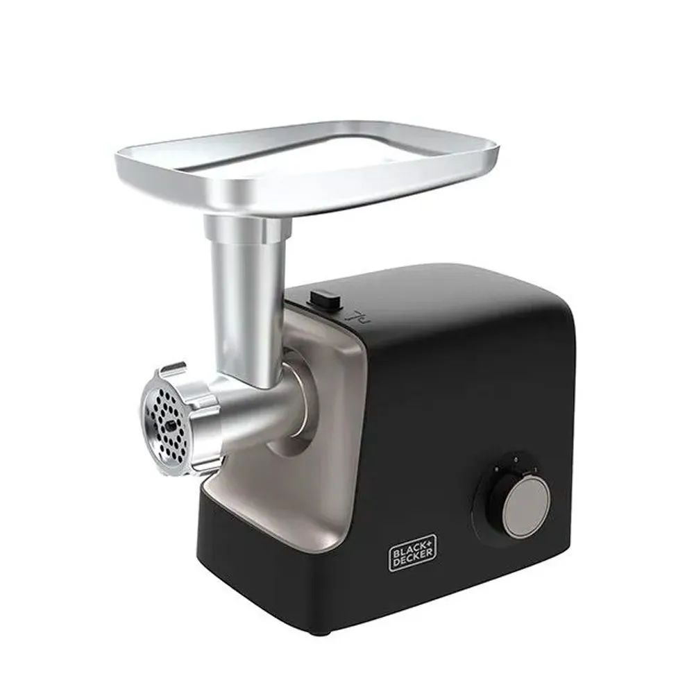 Основные: Мощность, Вт: 2000: Макс. мощность (при блокировке мотора), Вт: 2200: Количество насадок: 3: Количество скоростей: 2: Реверс: Да: Насадки приборов для измельчения продуктов: Для колбас/сосисок, Для фарша, Кеббе: Системы защиты: Защита от перегрева: Корпус: Материал корпуса: Пластик: Конструктивные особенности измельчителей продуктов: Отсек для шнура, Прорезиненные ножки: Вес товара, г: 3900: Материал лотка: Металл: Длина шнура, м: 1.2: Общие: Страна-изготовитель: Китай: Тип: Мясорубка: Дополнительные: Цвет: Черный;