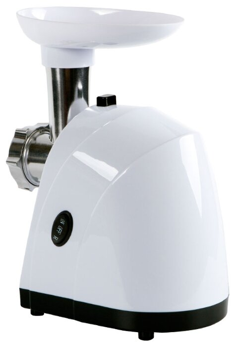 перерабатывает 2.3 кг/мин; насадка для приготовления колбас, насадка для кеббе, диск для фарша; корпус из пластика