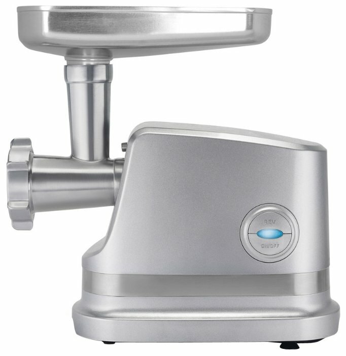 мощность 500 Вт; перерабатывает 3 кг/мин; насадка для приготовления колбас, насадка для кеббе, диск для фарша; корпус из пластика; отсек для хранения насадок