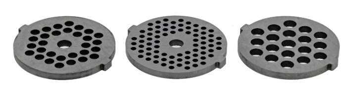 - Диск для фарша: 3 в комплекте, диаметр отверстий 3 мм, 5 мм, 7 мм