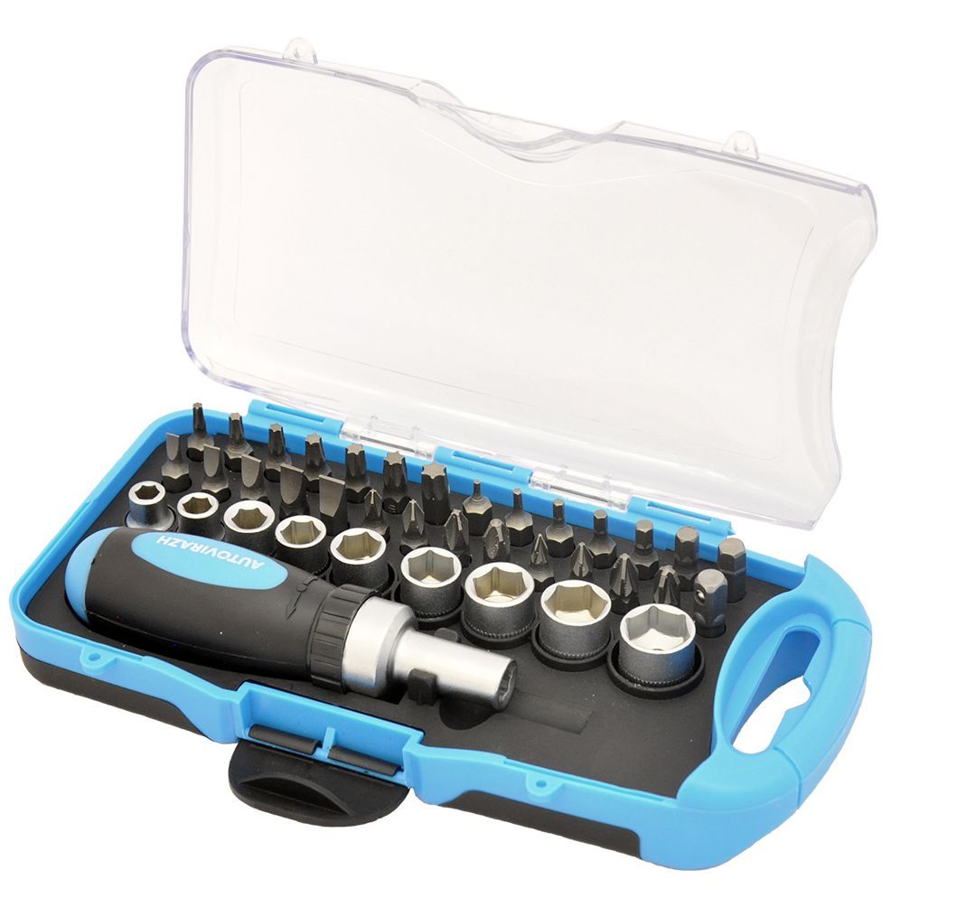 Набор инструмента 38 предметов 1/4DR, CrV AUTOVIRAZH AV-212038 представляет собой компактный комплект оборудования для базовой работы с крепежом различного типа. Инструменты уложены в пластиковый кейс с полупрозрачной крышкой, которая облегчает поиск подходящего предмета. Большое количество типовых бит позволяет обойтись базовым составом без расширения комплекта при работах дома, в гараже или при сборке сложных конструкций.