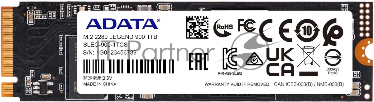 Накопитель SSD ADATA LEGEND 900, 1Tb, PCIe 4.0 x4, M.2 2280, NVMe, R/W 7000/4700, с радиатором