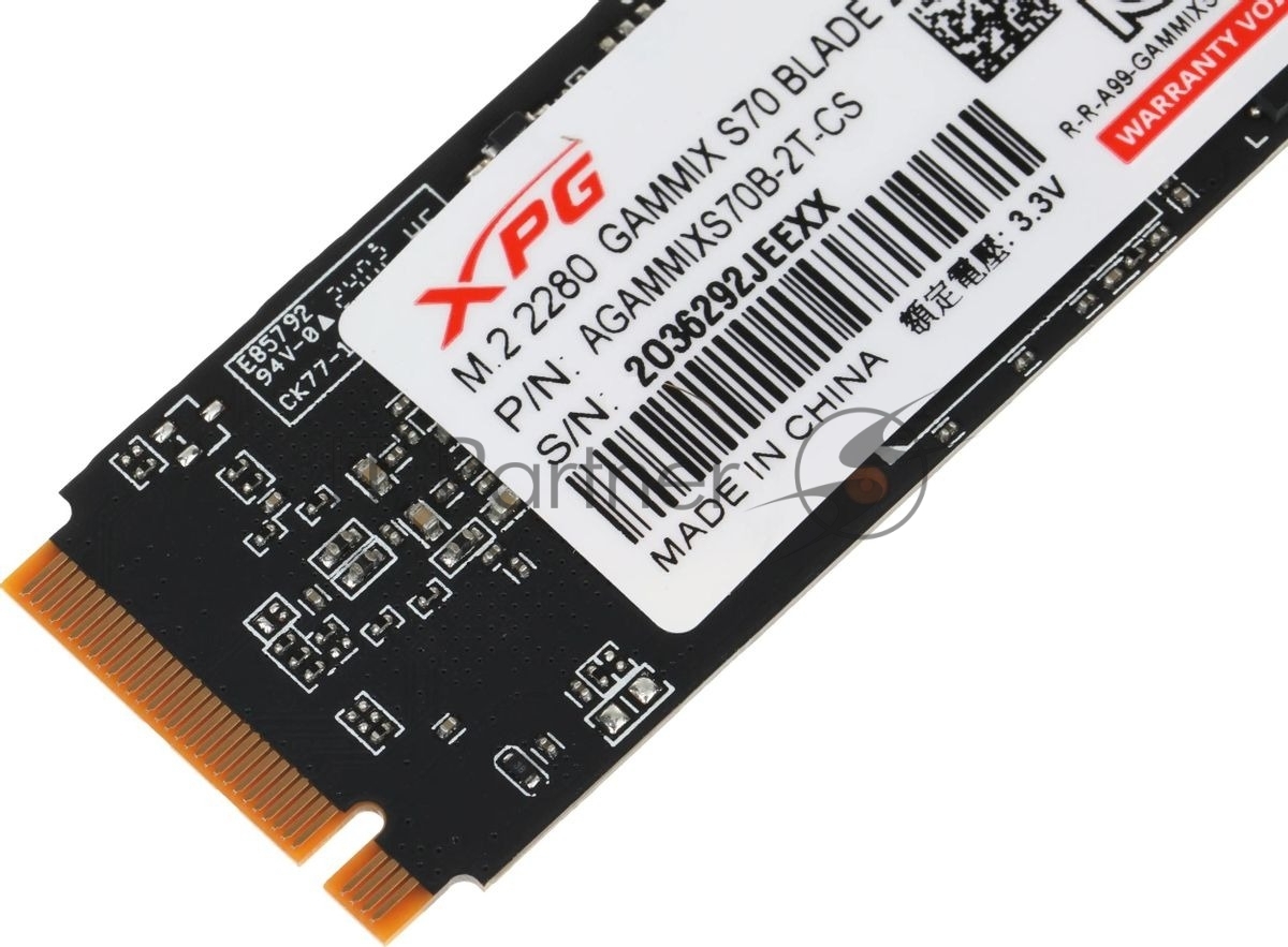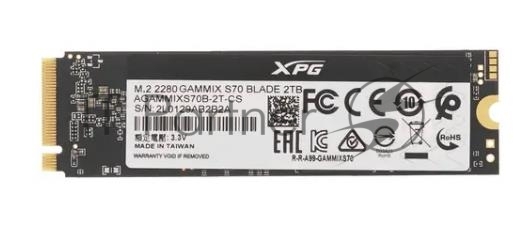 Накопитель SSD ADATA XPG GAMMIX BLADE S70, 2Tb, PCIe 4.0 x4, M.2 2280, NVMe, R/W 7400/6400