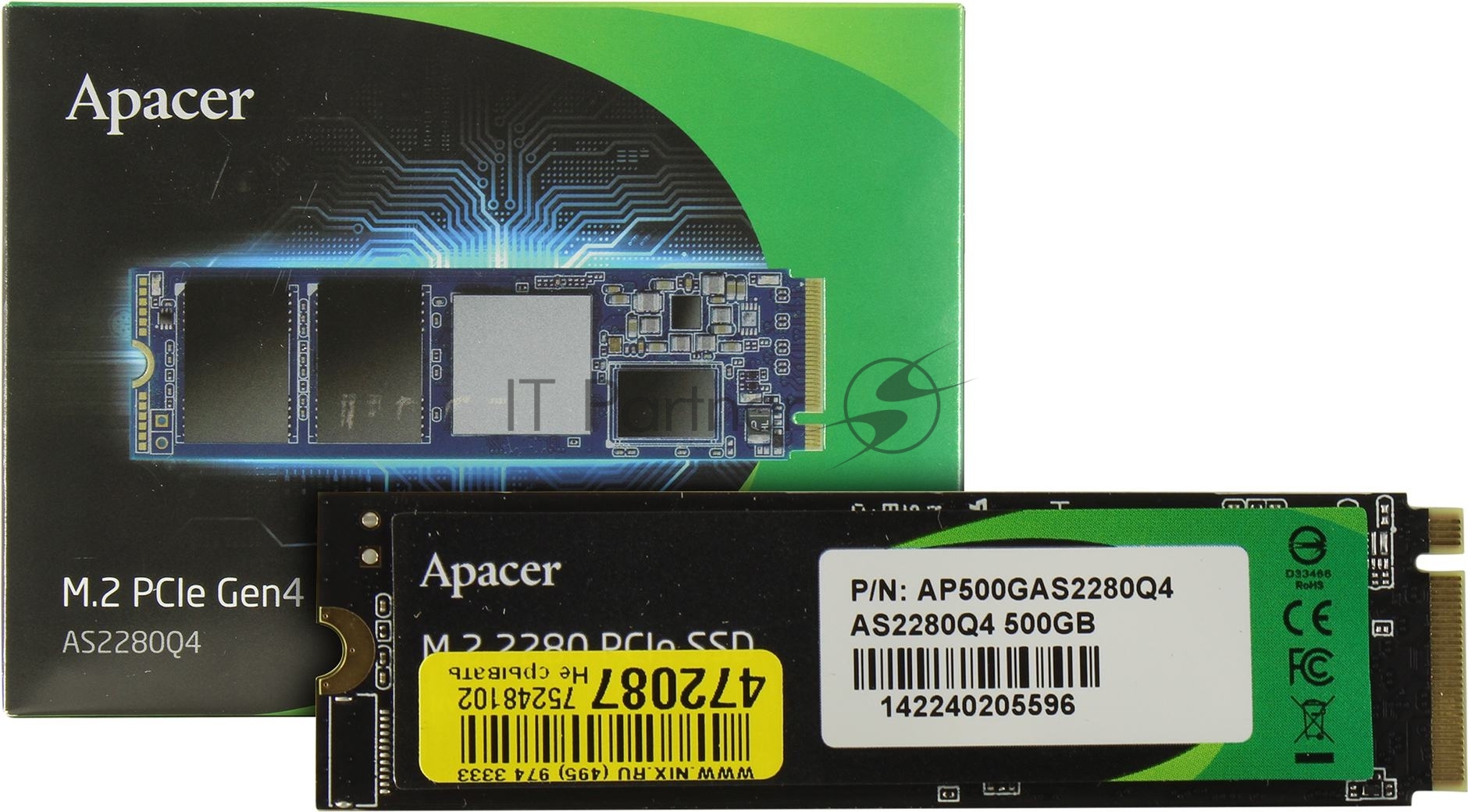Накопитель SSD Apacer AS2280Q4, 500GB, PCIe 4.0 x4, M.2 2280, NVMe, R/W 4500/2500, с радиатором