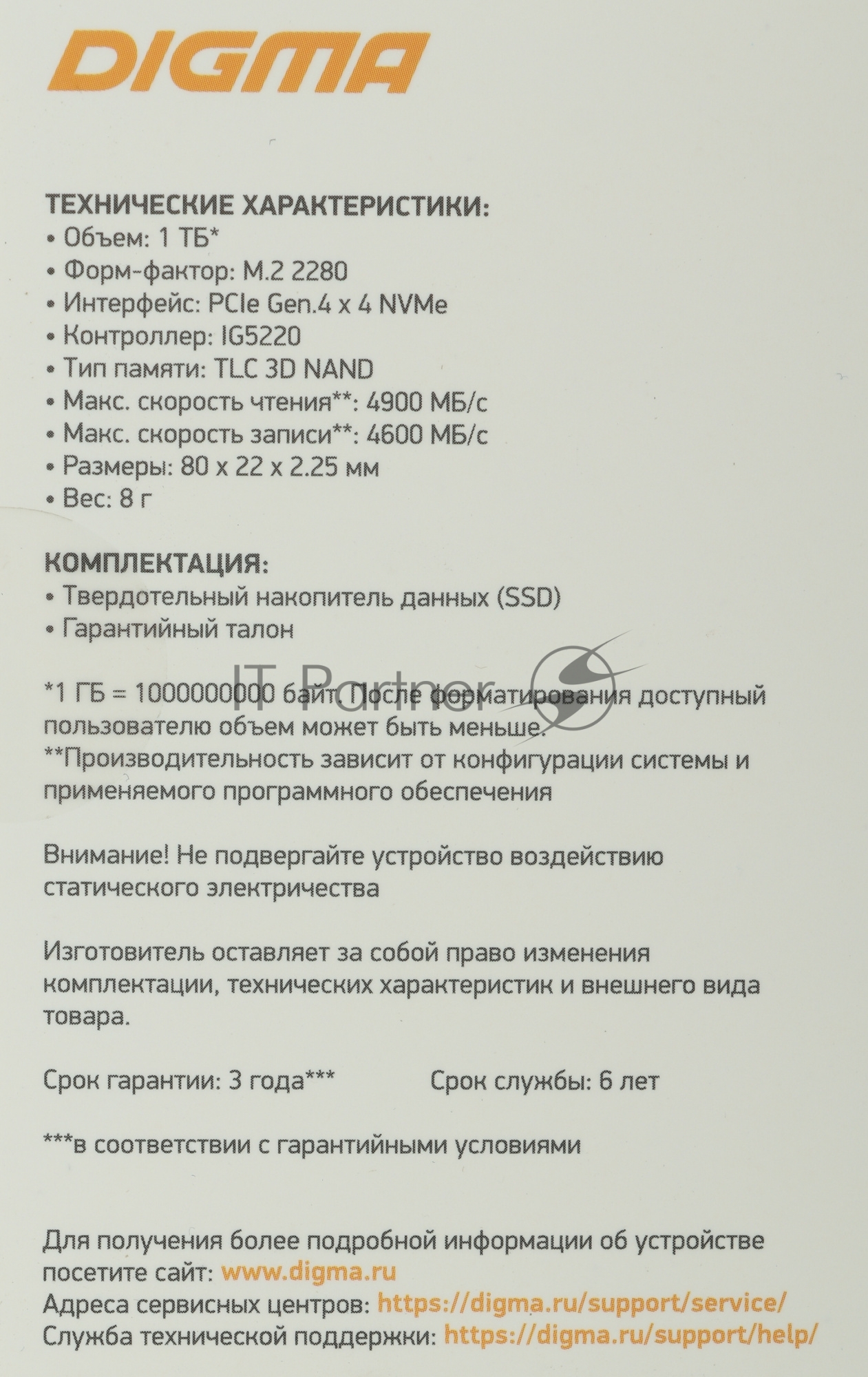 Накопитель SSD Digma Meta G2 DGSM4001TG23T, 1Tb, PCIe 4.0 x4, M.2 2280, NVMe, R/W 4900/4600