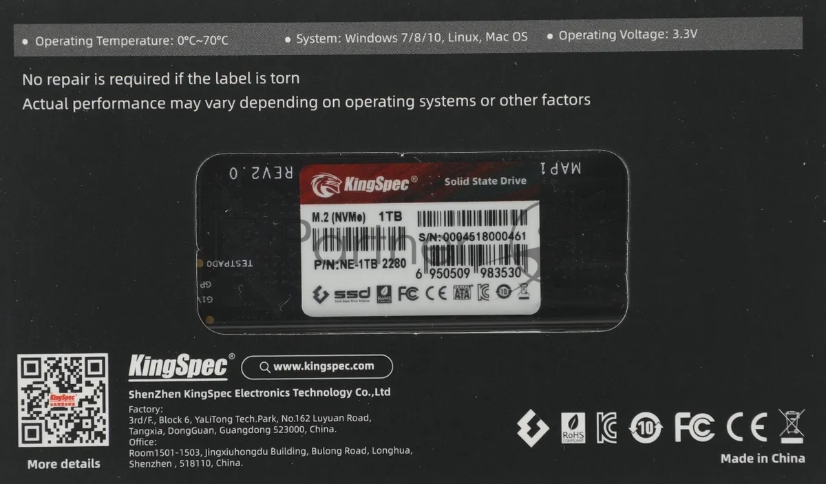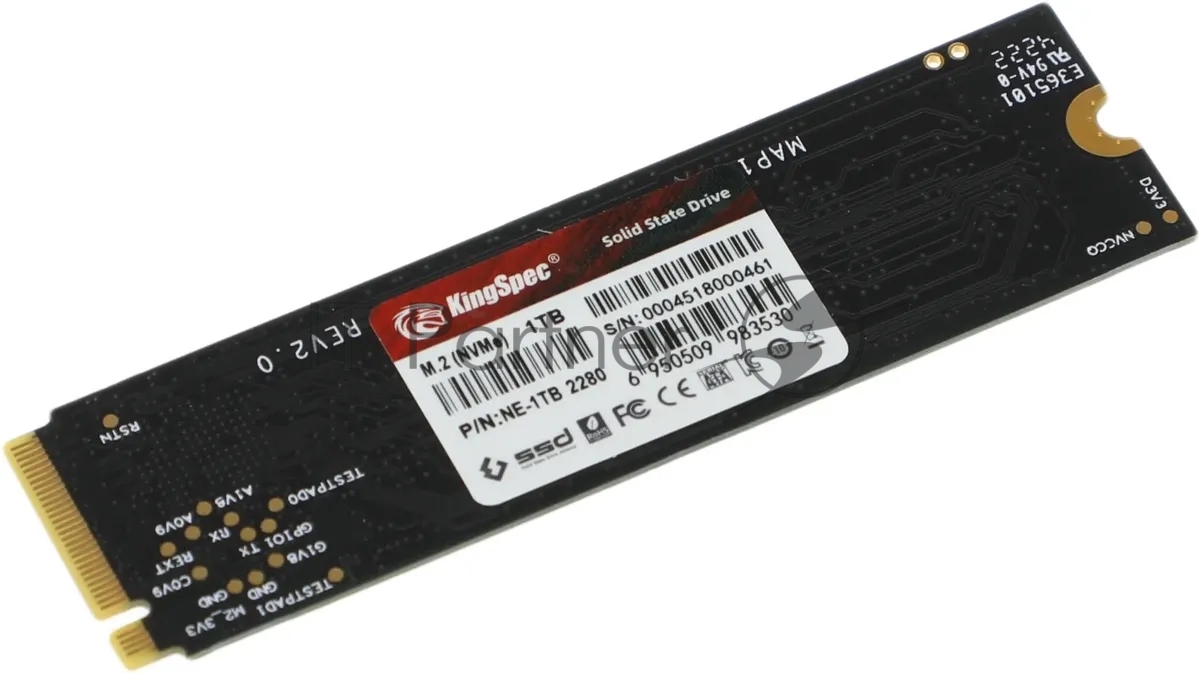 Накопитель SSD KingSpec NE-1TB, 1024GB, PCIe 3.0 x4, M.2 2280, NVMe, R/W 2400/1900