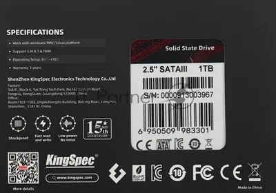 Накопитель SSD KingSpec P3-1TB, 1024GB, SATA, 2.5", R/W 570/500