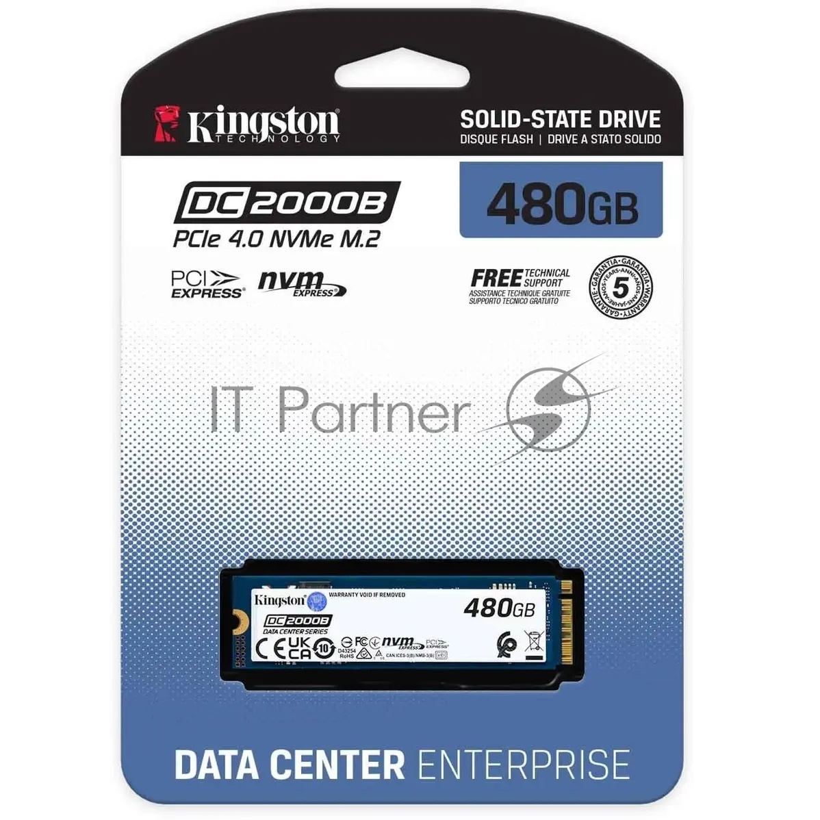 Накопитель SSD Kingston DC2000B, 480GB, PCIe 4.0 x4, M.2 2280, R/W 7000/800