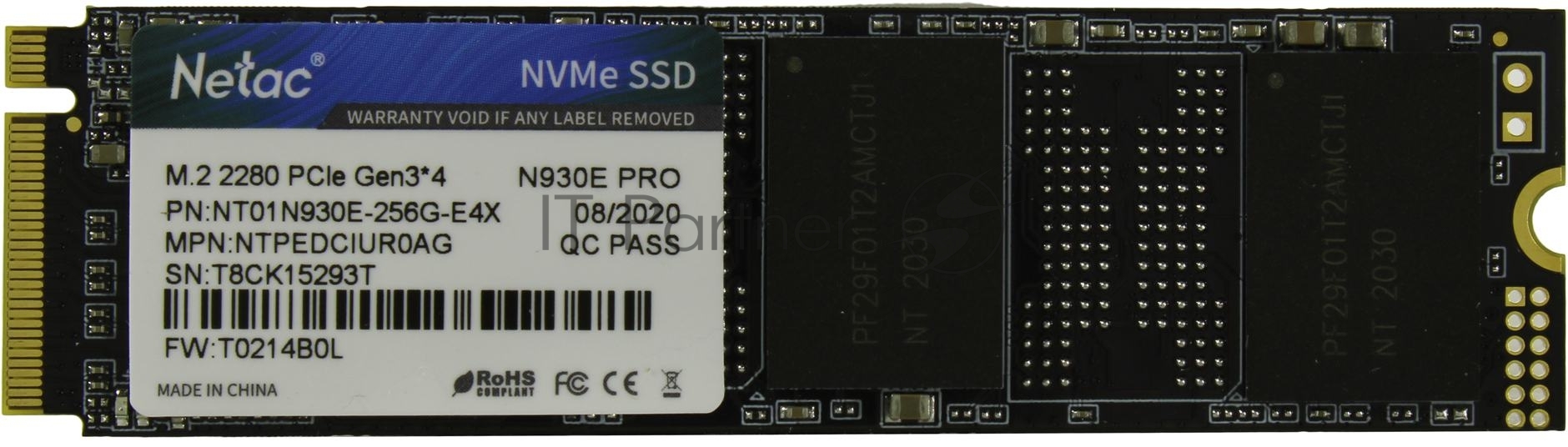 Накопитель SSD Netac N930E Pro, 256GB, PCIe 3.1 x4, M.2 2280, NVMe, R/W 2040/1270