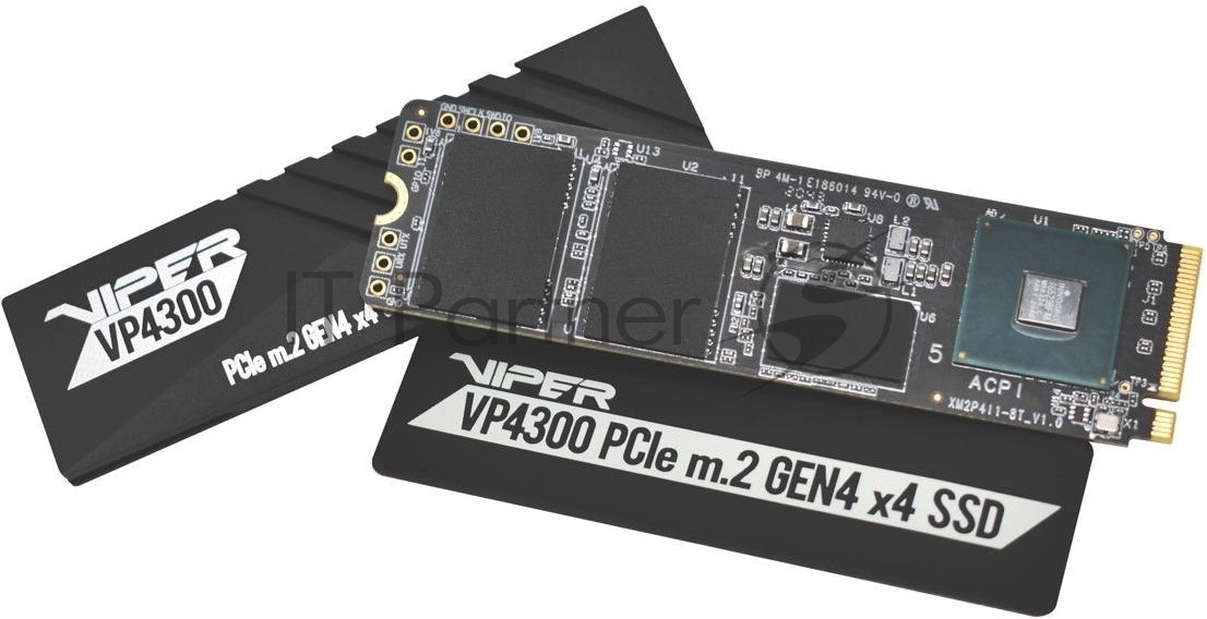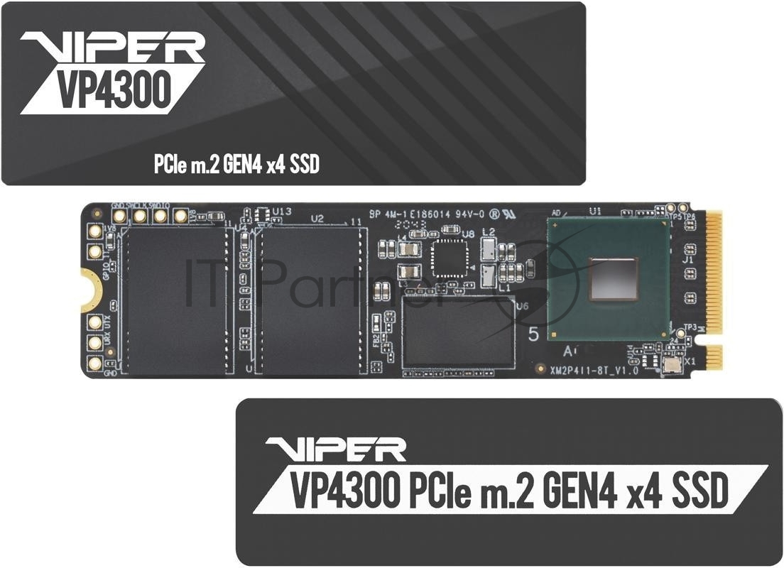 Накопитель SSD Patriot Viper VP4300, 1Tb, PCIe 4.0 x4, M.2 2280, NVMe, R/W 7400/5500, с радиатором