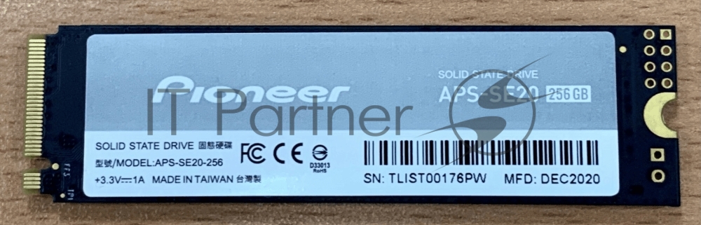 Накопитель SSD Pioneer APS-SE20-256, 256GB, M.2 2280, PCIe 3.0 x4, NVMe, R/W 2100/1600