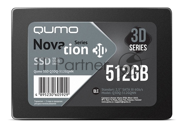 Накопитель SSD QUMO Novation 3D, 512GB, SATA III, 2.5", R/W 530/500