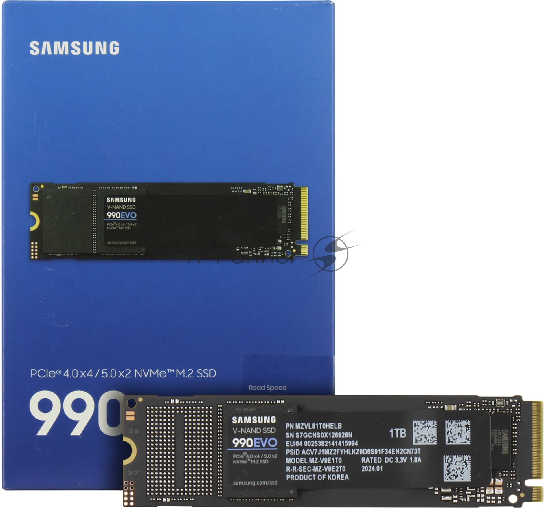 Накопитель SSD Samsung 990 EVO, 1024GB, PCIe 4.0 x4, M.2 2280, NVMe, R/W 5000/4200