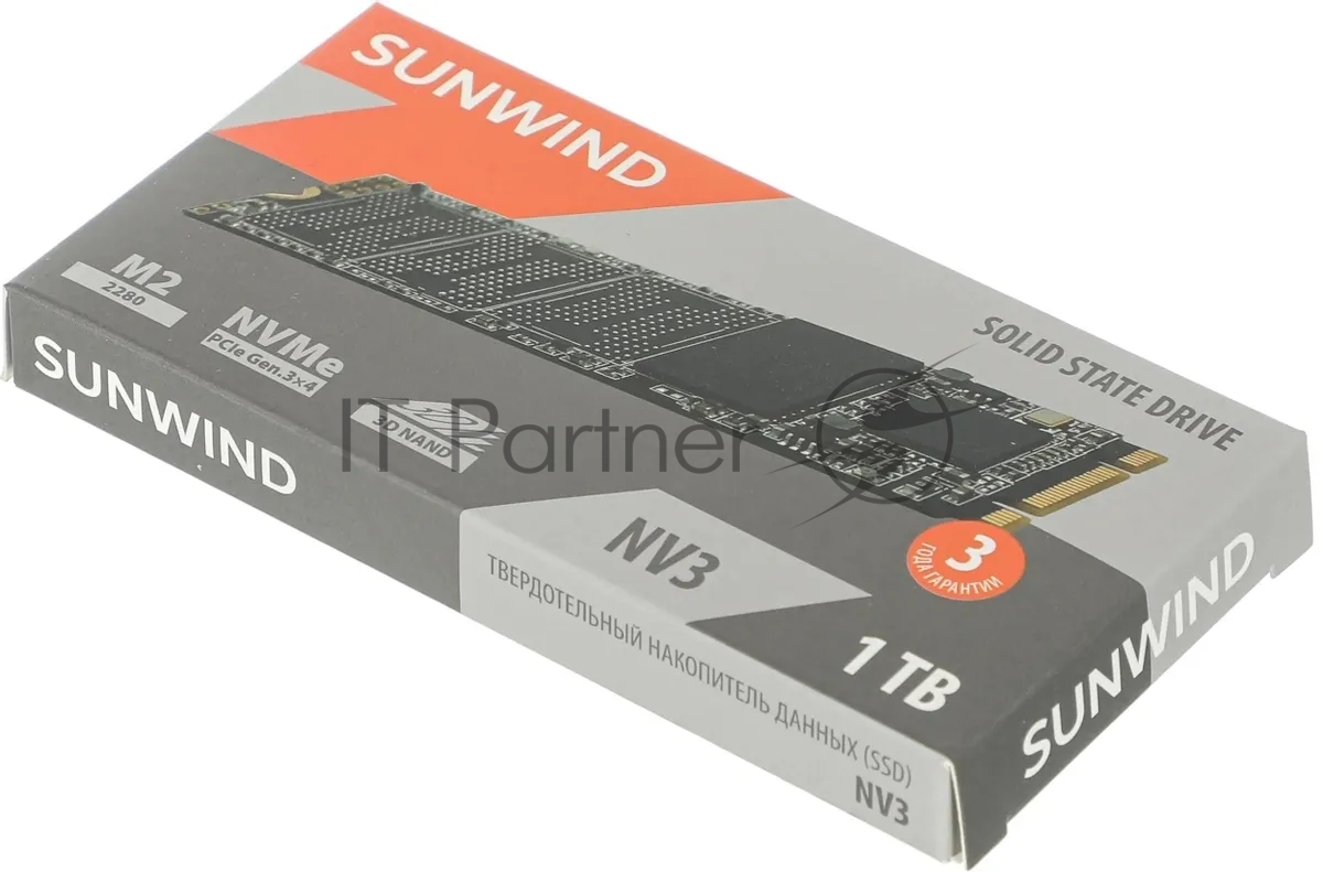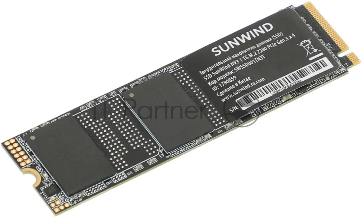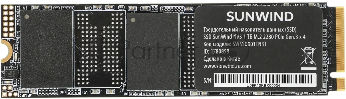 Накопитель SSD SunWind NV3 SWSSD001TN3T, 1Tb, PCIe 3.0 x4, M.2 2280, NVMe, R/W 2000/1600