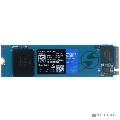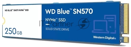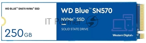Накопитель SSD WD Blue SN570 WDS250G3B0C, 250Gb, PCIe 3.0 x4, M.2 2280, NVMe, R/W 3300/1200