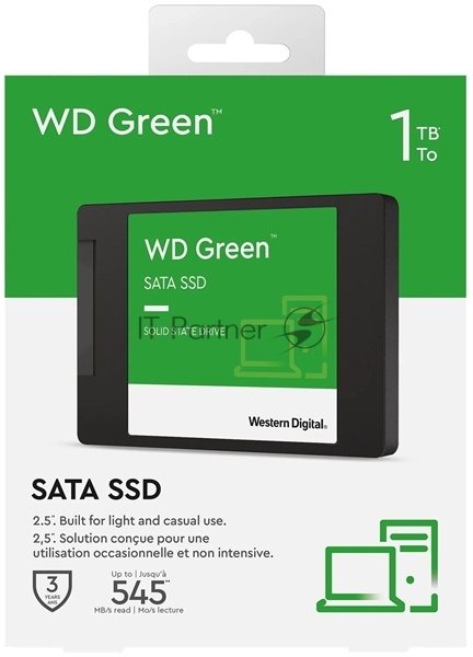 Накопитель SSD WD Green WDS100T3G0A, 1000GB, SATA III, 2.5", R/W 545/385