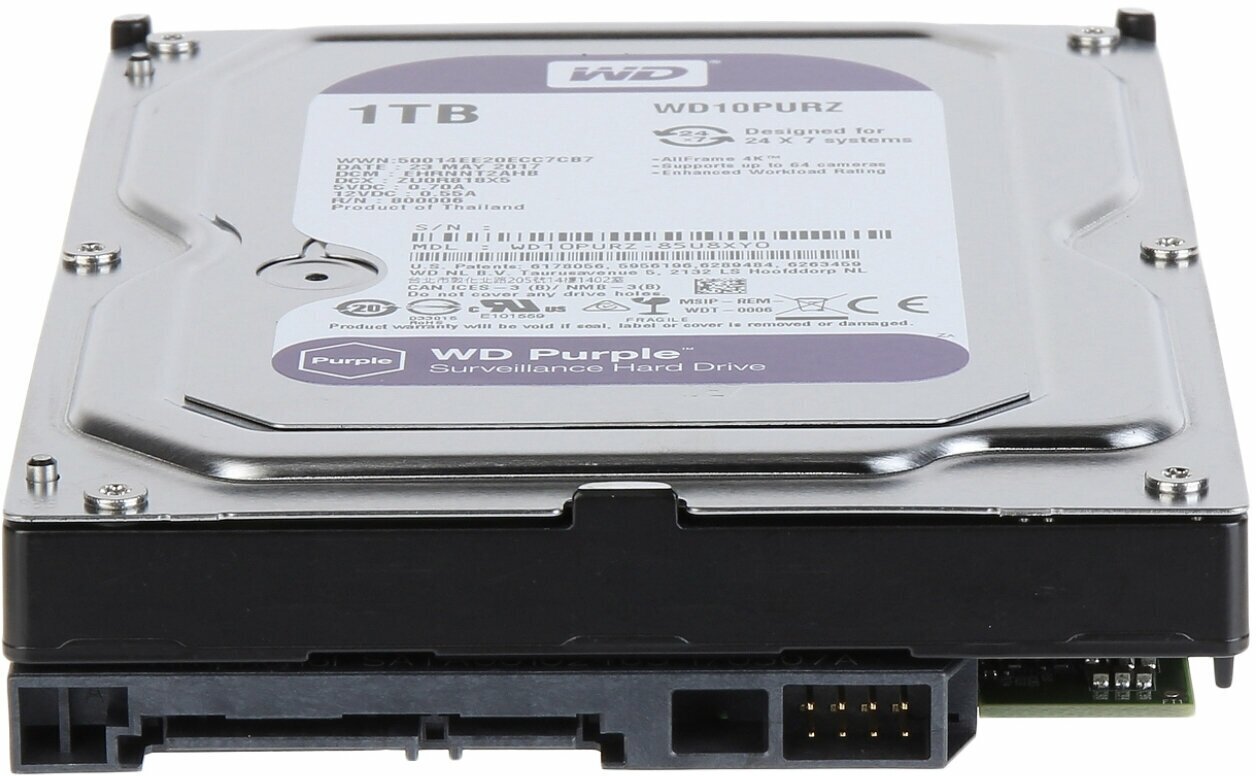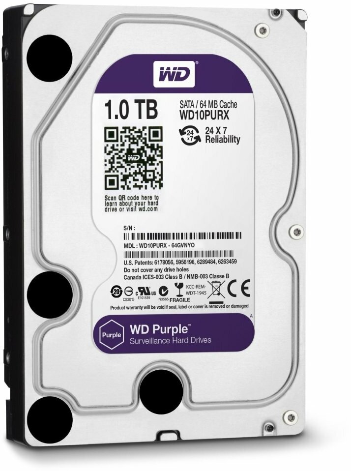 Накопитель WD HDD 3.5" SATA: 1000 Гб WD Purple WD10PURZ