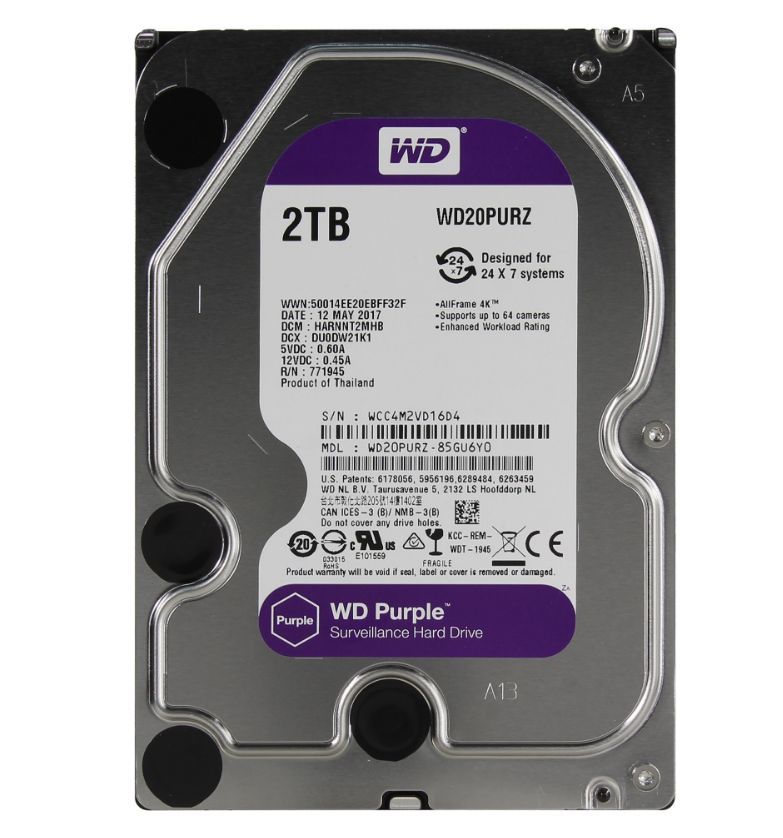 Форм-фактор: 3.5"/ Объем: 2 Тб/ Скорость: 5400 об.мин/ Буфер: 64 Mb/ Интерфейс: SATA-3/ Вес: 640 гр / Код: WD20PURZ