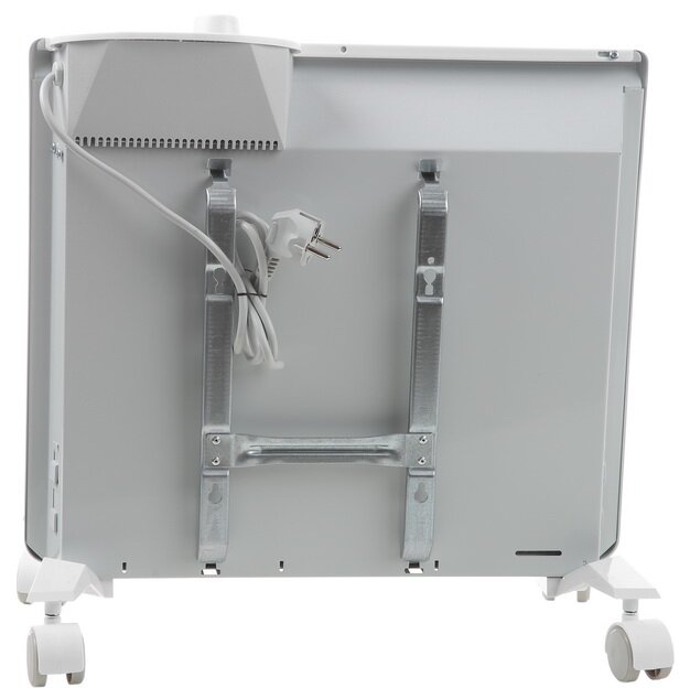 максимальная площадь обогрева 10 кв.м; мощность обогрева 500 Вт; термостат; количество режимов работы: 1; отключение при перегреве, защита от влаги; монтаж: настенный, напольный; тип нагревательного элемента: монолитный; габариты (ШхВхТ): 46x40x10 см; управление механическое