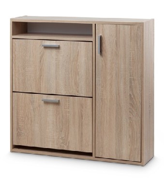 Обувница состоит из 2 ящиков, вмещающих 12 пар обуви, шкафчика с дверцей и полками высотой 336 мм, который может использоваться как для обуви, так и для других вещей. Сверху под столешницей есть небольшая ниша для хранения небольших предметовм высотой 100 мм. Выполнен из качественной ЛДСП толщиной 16 мм. Края обработаны ПВХ. ВхГхШ: (880x225x924)мм, цвет: дуб сонома