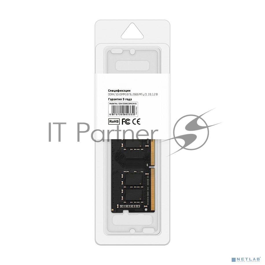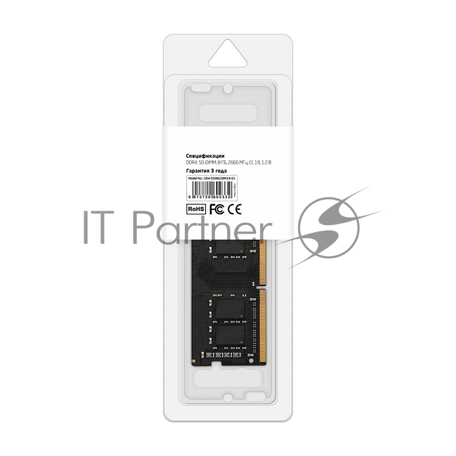 Оперативная память CBR CD4-SS08G26M19-01, DDR4, 8GB (1x8 GB), 2666 MHz, CL19, SO-DIMM