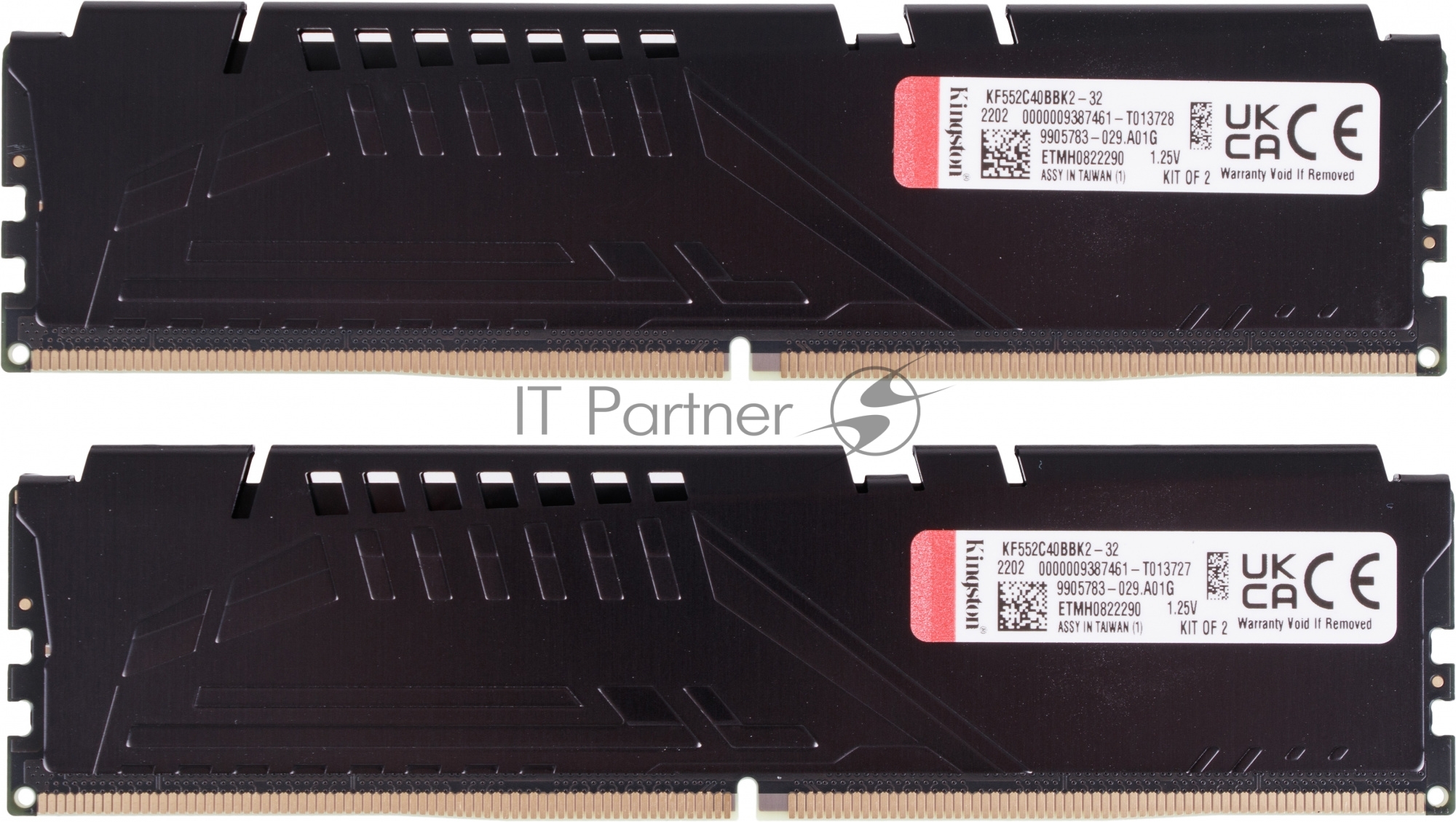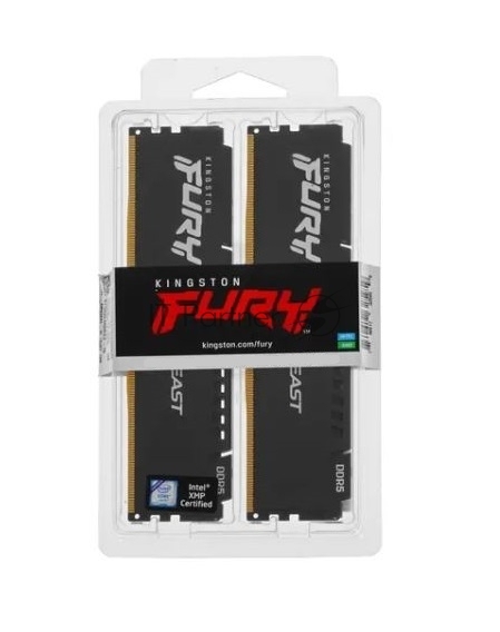 Оперативная память Kingston Fury Beast, DDR5, 32GB (2x16GB), 5200MHz, CL40, DIMM, радиатор, чёрный