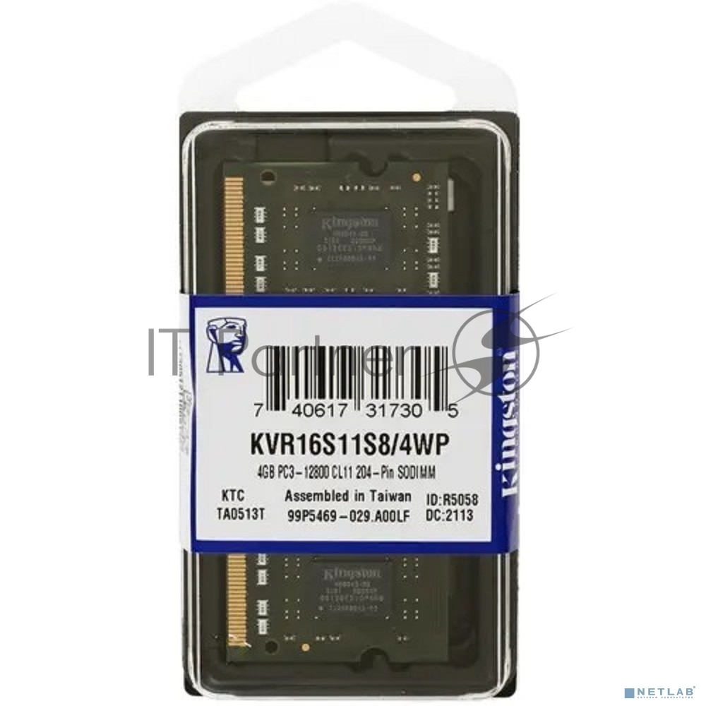 Оперативная память Kingston ValueRAM, DDR3, 4GB (1x4GB), 1600MHz, CL11, SO-DIMM