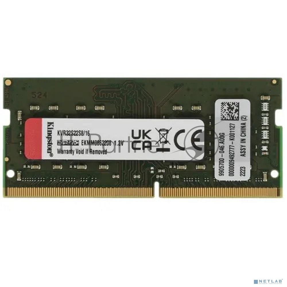 Оперативная память Kingston ValueRAM, DDR4, 16Gb (1x16Gb), 3200MHz, CL22, SO-DIMM
