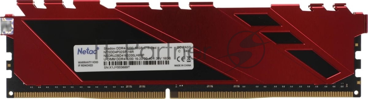 Оперативная память NETAC Shadow, DDR4, 16GB (1x16GB), 3200MHz, CL16, DIMM, с радиаторами, красный