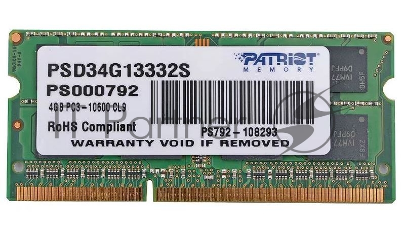 Оперативная память Patriot, DDR3, 4GB (1x4 GB), 1333 MHz, CL9, SO-DIMM