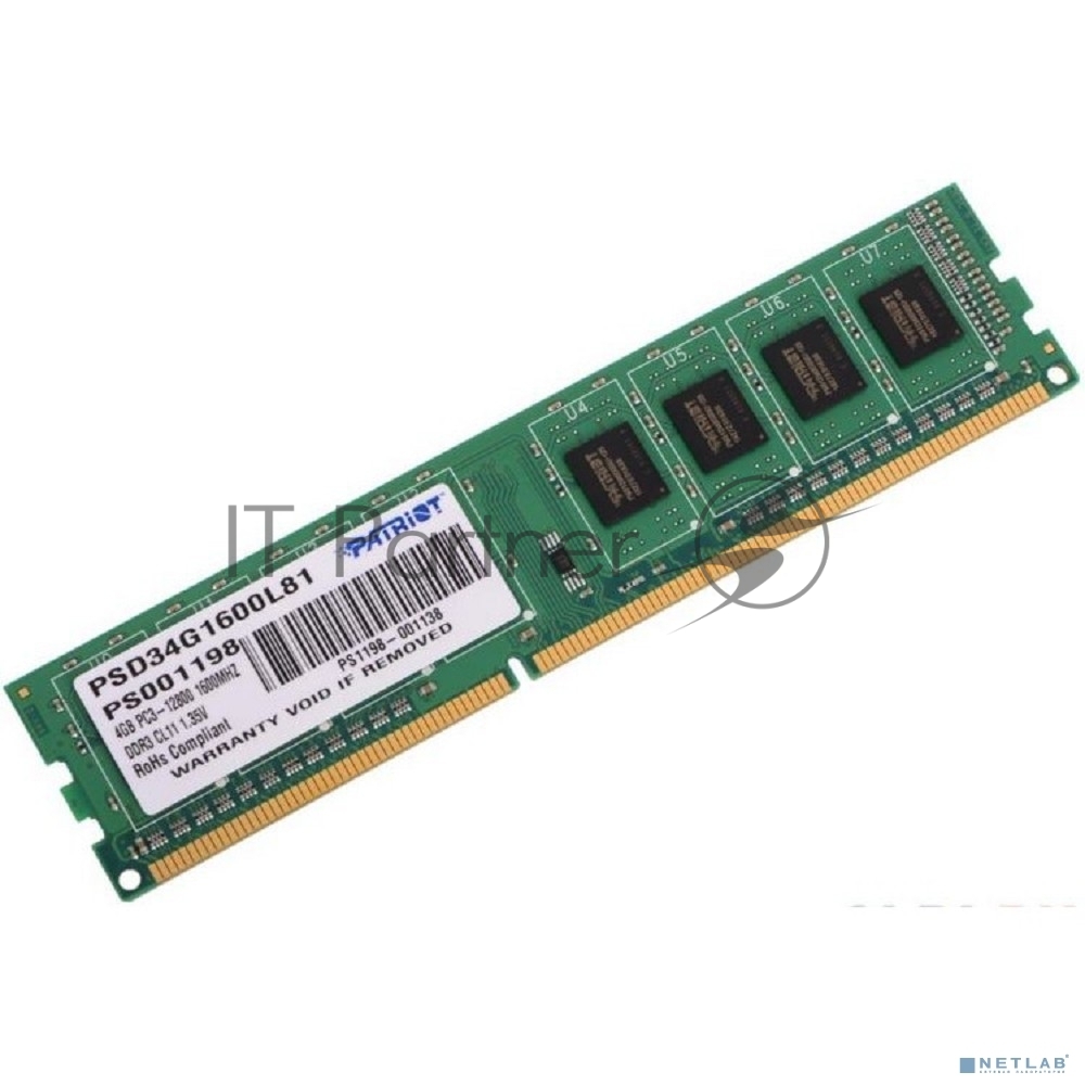 Оперативная память Patriot Signature, DDR3L, 4GB (1x4 GB), 1600 MHz, CL11, DIMM