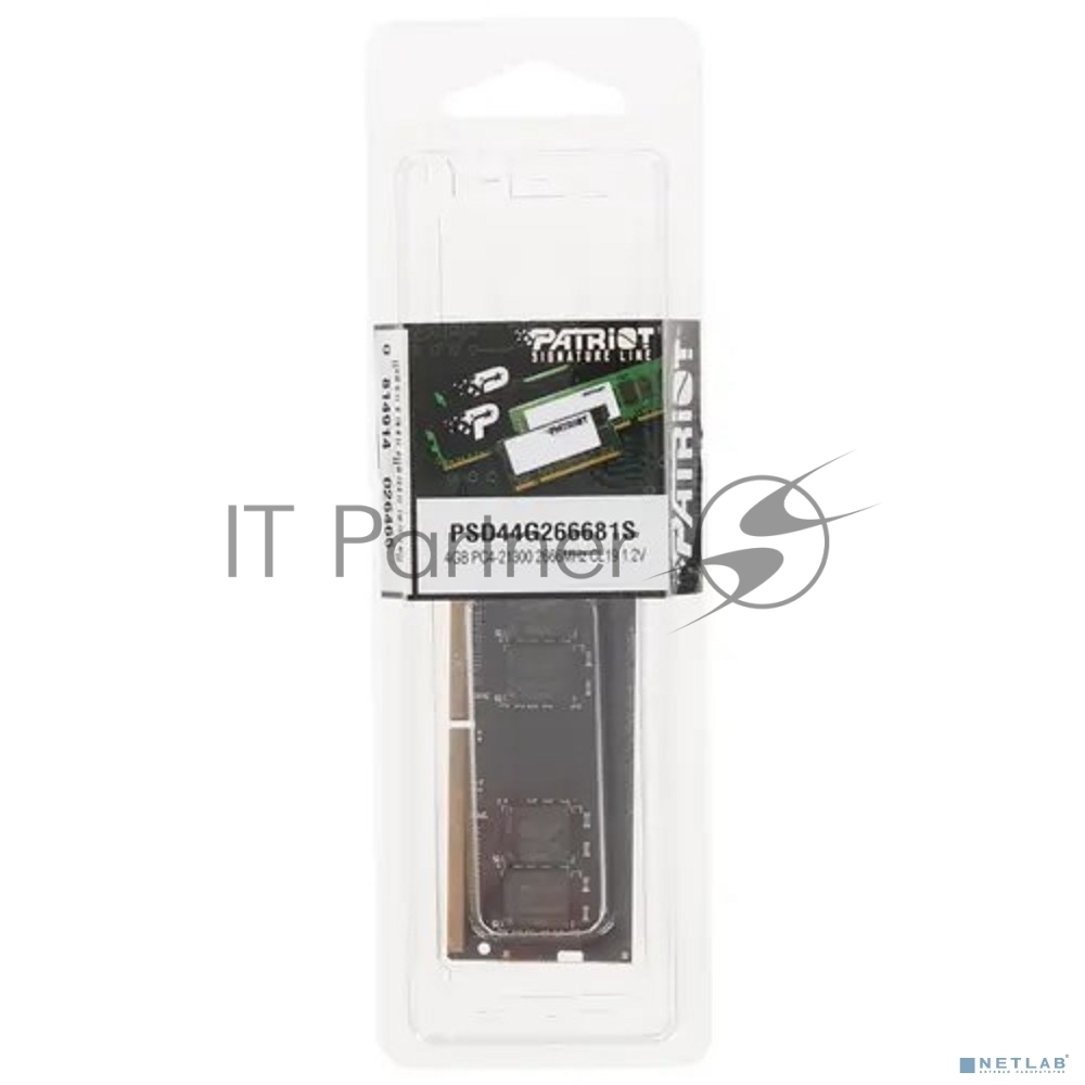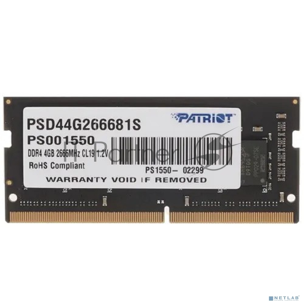 Оперативная память Patriot Signature, DDR4, 4GB (1x4 GB), 2666 MHz, CL19, SO-DIMM