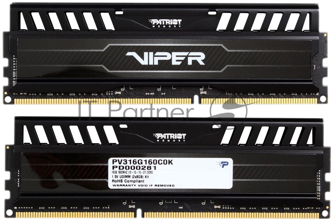 Оперативная память Patriot Viper 3, DDR3, 16GB (2x8 GB), 1600 MHz, CL10, DIMM, радиатор, черный