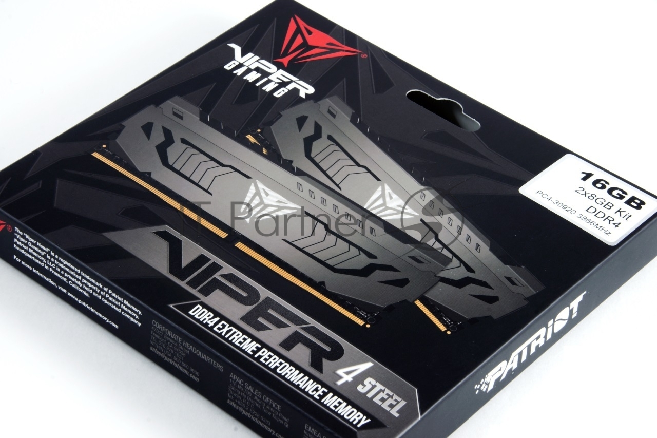 Оперативная память Patriot Viper Steel, DDR4, 16GB (2x8 GB), 3733 MHz, CL17, DIMM, радиатор, чёрный